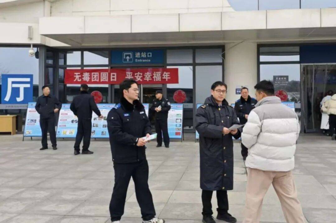 市武宁县禁毒大队将禁毒宣传阵地前移至人流量稠密的客运核心等场合,开展以“禁毒守护不松弛,安然回家过大年”为从题的精准宣传勾当,全力守护群众春运旅途平安。