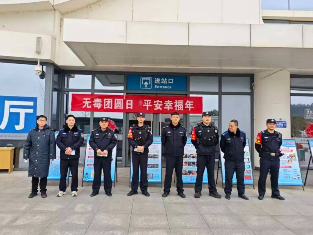 景德镇市珠山禁毒大队结合高铁北坐,正在景德镇高铁北坐集中开展了以“安然春运,远离毒品”为从题的禁毒宣传勾当。