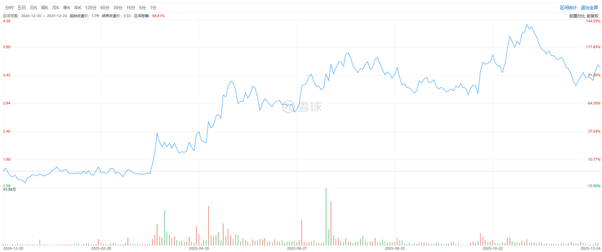 另一边倒是定位“家庭自炊场景”的锅圈逆势突围:2025年第三季度,锅圈估计营收18。50-20。50亿元(同比增加13。6%-25。8%),焦点运营利润6500-7500万元(同比增加44。4%-66。7%)。业绩的增加间接带动本钱市场的承认,其股价从2025年1月的1。57港元/股低点,攀升至11月的4。44港元/股高点,区间涨幅接近翻倍,达98。1%。